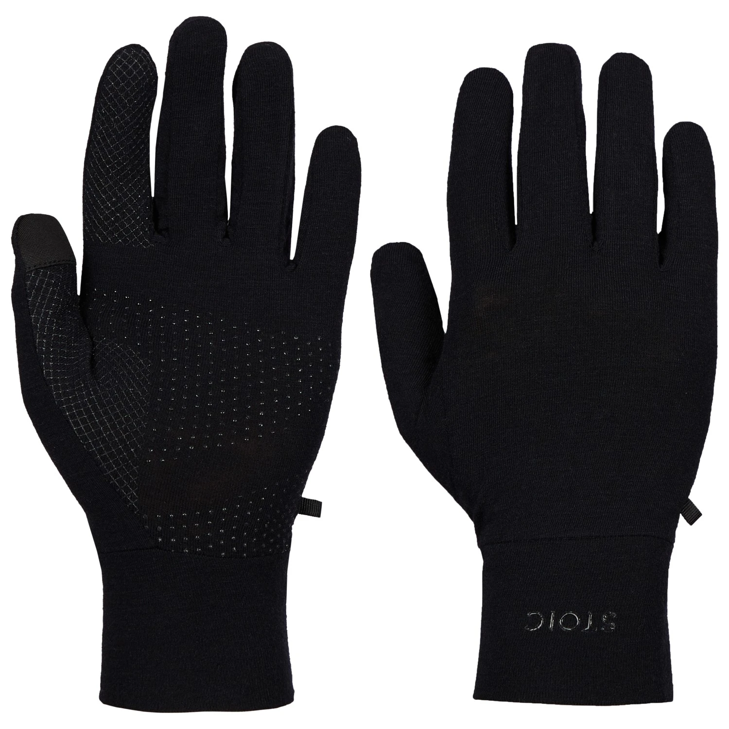 Les gants Merino180 BjoernenSt. Silicone Glove de la marque Stoic offrent une protection légère contre le froid dans la vie quotidienne. Ils gardent les doigts au chaud pendant l’entraînement de course et peuvent être utilisés comme doublure pratique par temps froid. Grâce au mélange de laine mérinos et de fibres synthétiques, les gants sont robustes et ne se déforment pas. De plus, ils sont doux et n’irritent pas la peau. La laine est fine et fournit une chaleur agréable.
